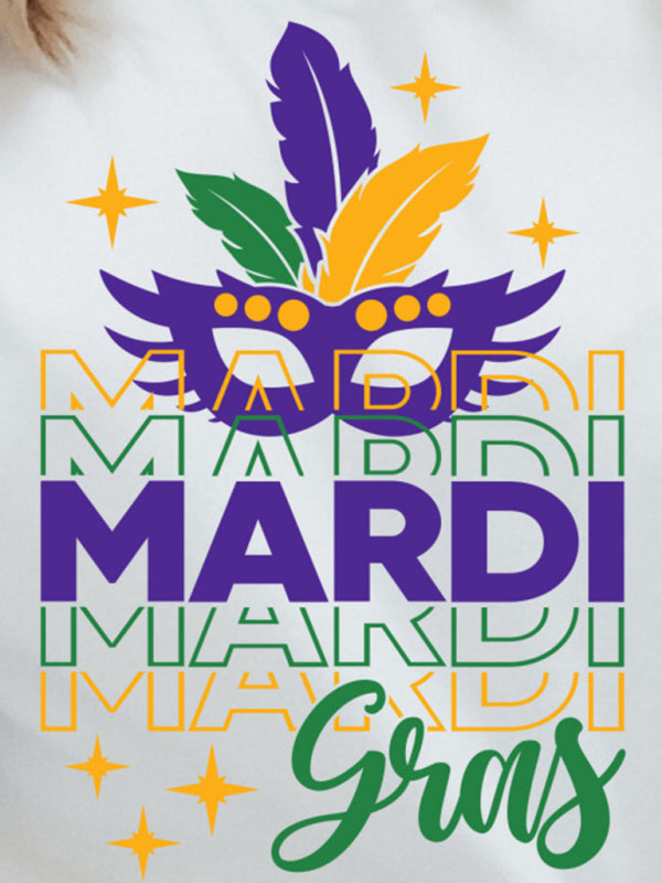 New Mardi Gras Carnival Mask Print Graphic Short Sleeve T-Shirt Top