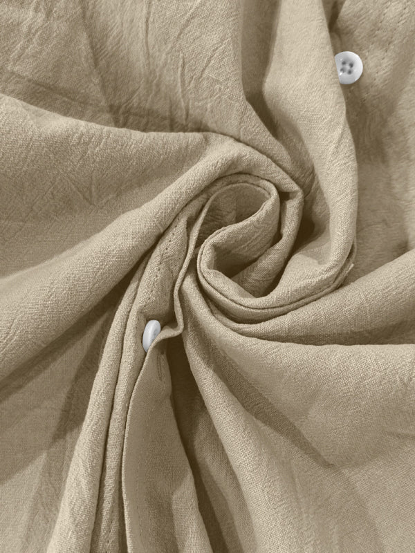 Linen long-sleeved stand-up collar breathable casual men's shirt