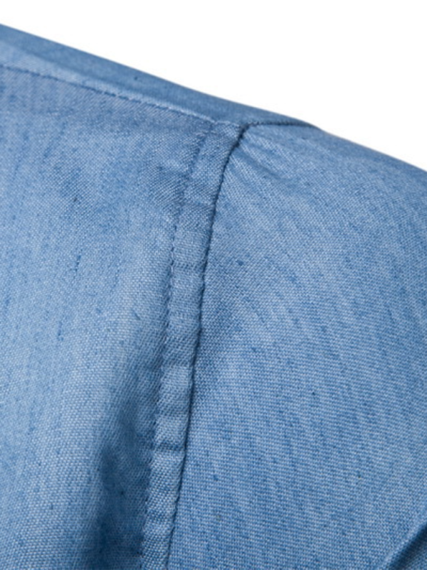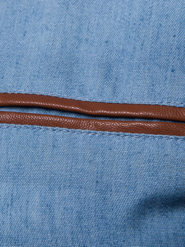 Men's Casual Shirt Pocket Patchwork Leather Long Sleeve Shirt