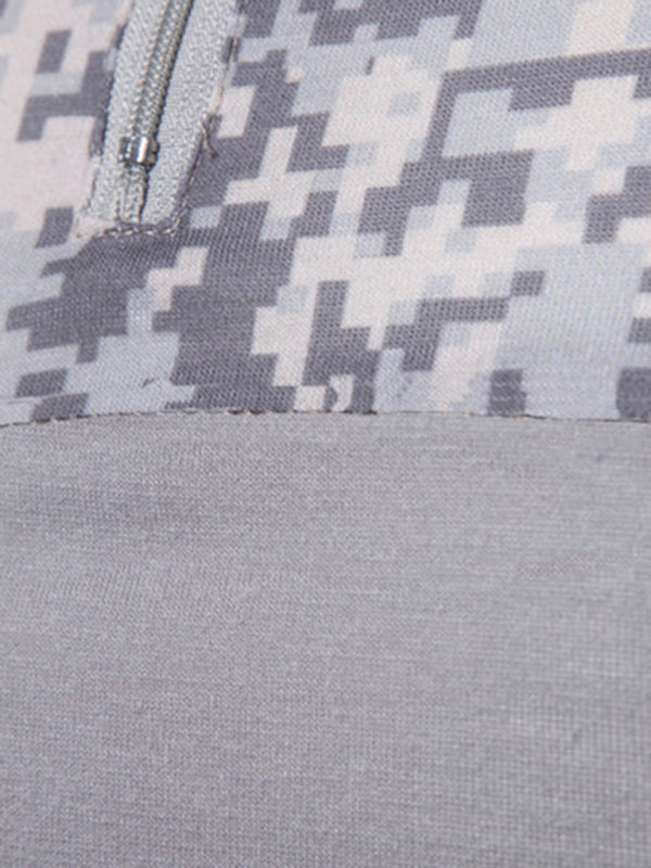 Men's Military Field Outdoor Elastic Fitness Camouflage Long Sleeve Zipper Pocket T-Shirt